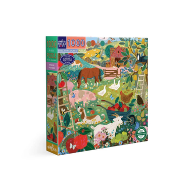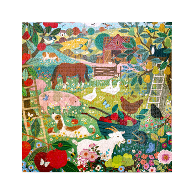 Victoria Ball’s vision of a fruit harvest among farm animals surrounded by bucolic pastureland provides a peaceful setting for contemplative puzzli...