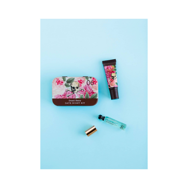 A perfect on-the-go date night prep kit including a luscious Citrus Rose Lip Tint and a Dead Sexy Mini Rollerball Eau de Parfum inside a keepsake t...
