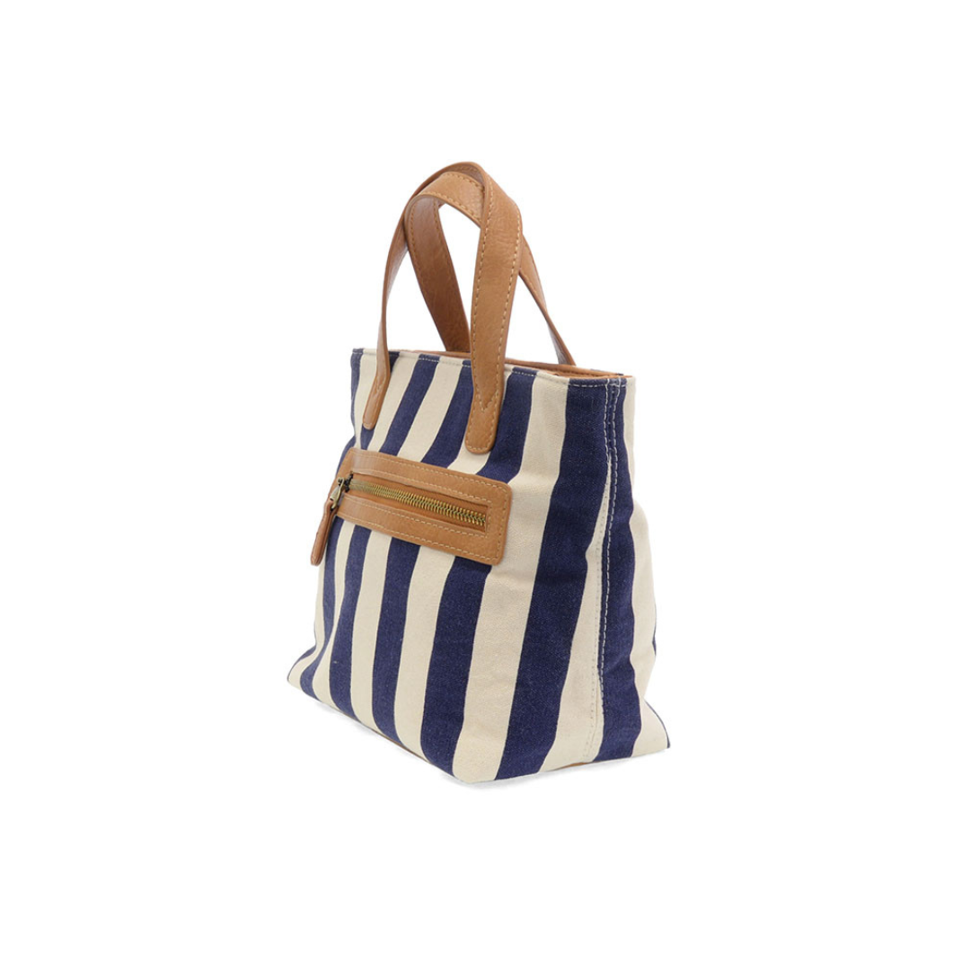 Navy Awning Stripe Mini Canvas Tote